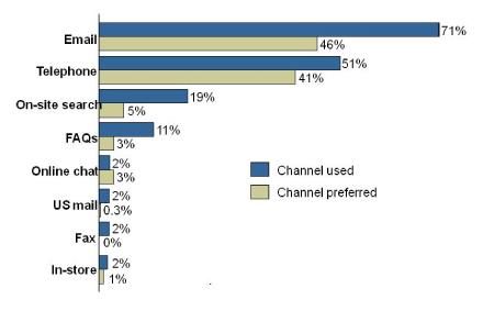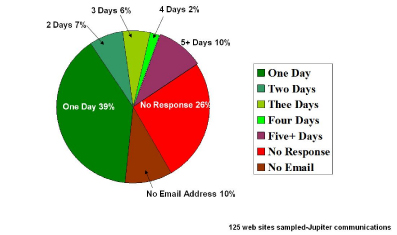 該報告進一步總結(jié)到,60%的網(wǎng)站客戶希望更多互動但許多電子商務(wù)企業(yè)無法回應(yīng)電子郵件且不能提供足夠的電話支持。也有很多電子商務(wù)企業(yè)提供電子郵件支持,比如說etoys,但對于如潮水般洶涌而來的電子郵件聯(lián)絡(luò)他們顯然沒有什么準備以至于處理結(jié)果符合客戶預(yù)期的郵件少之又少。如果處理的好