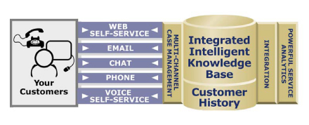 Technologies”是一家非常著名的多接觸點呼叫中心供應(yīng)商,這家公司建議采用“通用事故”追蹤機制,它強調(diào)報表和歷史紀錄必須作為任何一個多接觸點聯(lián)絡(luò)中心不可或缺的組成部分!癛ightnow”提供的以下插圖很清楚地向我們展示了多渠道知識庫集成是如何被強制執(zhí)行的。