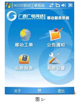移動(dòng)工單系統(tǒng)是數(shù)字電視客戶呼叫中心平臺(tái)系統(tǒng)的延伸,它結(jié)合最新的網(wǎng)絡(luò)移動(dòng)技術(shù),實(shí)現(xiàn)數(shù)字電視服務(wù)工單分派業(yè)務(wù)的自動(dòng)流轉(zhuǎn)和實(shí)時(shí)流轉(zhuǎn),各地市維護(hù)站的服務(wù)工作人員通過(guò)智能手機(jī)終端,實(shí)時(shí)獲取工作任務(wù)、計(jì)劃安排,進(jìn)行業(yè)務(wù)處理,通過(guò)移動(dòng)網(wǎng)絡(luò)查詢客戶信息、查詢用戶產(chǎn)品訂購(gòu)資料,上報(bào)處理結(jié)果和用戶反饋信息,通過(guò)移動(dòng)網(wǎng)絡(luò)提交到管理部門(mén),管理層能及時(shí)的掌握服務(wù)進(jìn)展情況,并能隨時(shí)做出決策和指揮,真正實(shí)現(xiàn)對(duì)用戶最快速、有效的服務(wù)需求響應(yīng),保證了服務(wù)質(zhì)量和用戶滿意度,提升了數(shù)字電視的服務(wù)水平與服務(wù)檔次。其界面如圖1所示。