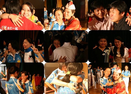 下午的誓師大會上,大家高喊口號“紅動奧運,紅動中國!加油奧運,加油中國!”。在一片紅色的海洋里,我們舉起右手,作出莊嚴的宣誓:用實際行動來實踐北京于世人的期許,用熱情,真誠、友好的服務,為中國贏得尊嚴和友誼。