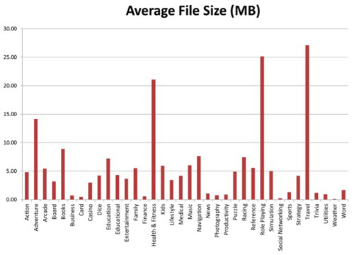 注意控制應(yīng)用的文件大小,這在相當(dāng)程度上會(huì)影響到應(yīng)用的下載量。如果你的iOS應(yīng)用的文件大小超過(guò)10MB,這將會(huì)使你失去很多潛在用戶。10MB通常是冒險(xiǎn)和角色扮演類游戲、健康和旅游類應(yīng)用的大小。為了節(jié)約流量,用戶通常選擇用Wifi下載它們。