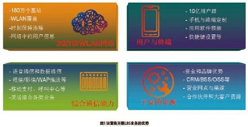 運(yùn)營(yíng)商的資金雄厚,品牌顯著,CRM/BSS/OSS等運(yùn)營(yíng)支撐系統(tǒng)蘊(yùn)含豐富的用戶(hù)信息,營(yíng)業(yè)網(wǎng)點(diǎn)密布,合作伙伴眾多,大客戶(hù)資源豐富,這些都為開(kāi)展LBS業(yè)務(wù)提供了良好的資源。