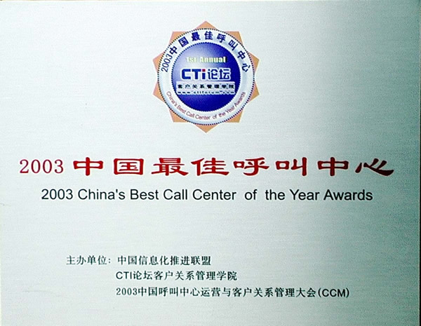 國(guó)家級(jí)稱號(hào)有“全國(guó)建設(shè)信息工作先進(jìn)單位”、“全國(guó)創(chuàng)建文明行業(yè)工作先進(jìn)單位”、“全國(guó)巾幗文明示范崗”、“2003中國(guó)最佳呼叫中心”。