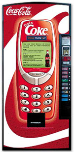 在澳大利亞,澳大利亞電訊和可口可樂公司聯(lián)合發(fā)布了一項新業(yè)務(wù)的試運(yùn)營:“撥打可口可樂”。這項新業(yè)務(wù)使該公司的后付費(fèi)移動電話客戶可以使用他們的GSM移動電話,在可口可樂售貨機(jī)上購買他們喜愛的飲料。這次試驗(yàn)在悉尼中央車站的17臺可口可樂售貨機(jī)上進(jìn)行。