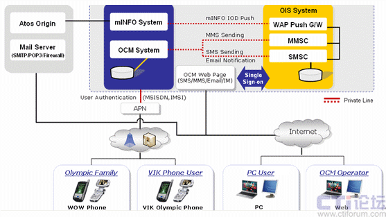 奧運(yùn)社區(qū)傳送服務(wù),簡(jiǎn)稱OCM,是用于競(jìng)賽運(yùn)營的移動(dòng)通信服務(wù)機(jī)構(gòu),OCM的服務(wù)包括使用短信和彩信的信息群發(fā)以及使用即時(shí)信息和電子郵件的社區(qū)通信服務(wù)。屆時(shí),三星北京2008WOW將根據(jù)用戶的喜好設(shè)置提供個(gè)性化的奧運(yùn)信息,分為競(jìng)賽、新聞、信息、火炬接力和“我的WOW”——每個(gè)WOW用戶可以根據(jù)自身的喜好定制特殊的信息服務(wù)。