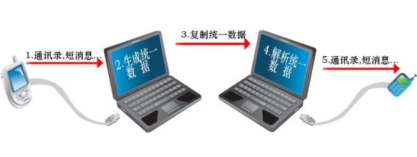 對于新出的手機型號,如果可以通過手機直接生成統(tǒng)一格式的交換數(shù)據(jù),并且可以通過手機直接解析其他手機生成交換數(shù)據(jù),示意圖如下:
