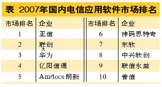 如果說在2007年以前,電信應(yīng)用軟件市場(chǎng)考察的更多是企業(yè)業(yè)務(wù)擴(kuò)展能力的話,2007年可以說是電信應(yīng)用軟件的一個(gè)分水嶺。在3G建設(shè)中,產(chǎn)品研發(fā)能力、企業(yè)的產(chǎn)品線以及項(xiàng)目執(zhí)行能力等幾項(xiàng)指標(biāo)在市場(chǎng)的競(jìng)爭(zhēng)中也將占據(jù)主要的位置。研發(fā)出滿足客戶需求的產(chǎn)品、提供全套的產(chǎn)品服務(wù)和快速可靠的完成項(xiàng)目,將使企業(yè)在市場(chǎng)競(jìng)爭(zhēng)中占據(jù)更多的市場(chǎng)份額。