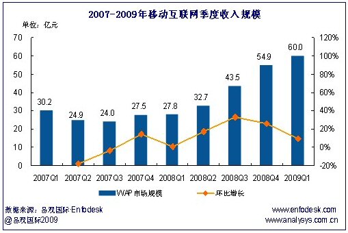 2009首季中國(guó)移動(dòng)互聯(lián)網(wǎng)收入達(dá)60億 運(yùn)營(yíng)商官方門(mén)戶(hù)有望快速增長(zhǎng)