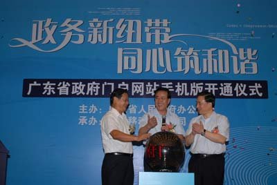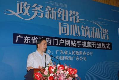 2009年8月7日,廣東省政府在廣州舉行省政府門戶網(wǎng)站手機(jī)版開通儀式。省政府秘書長徐尚武、中國移動廣東公司總經(jīng)理徐龍在開通儀式上致辭。