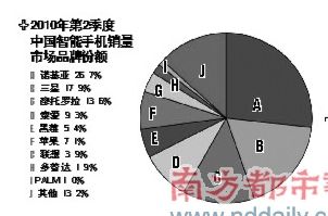 市場(chǎng)調(diào)研機(jī)構(gòu)易觀國(guó)際最新監(jiān)測(cè)數(shù)據(jù)顯示,中國(guó)智能手機(jī)市場(chǎng)2010年第2季度國(guó)內(nèi)銷售總量達(dá)1348.1萬部(不計(jì)黑手機(jī)和水貨手機(jī)),環(huán)比增長(zhǎng)27.5%.在蘋果iOS與谷歌Android平臺(tái)沖擊下,Symbian合作伙伴在資源投入方面出現(xiàn)分化跡象,紛投蘋果、谷歌陣營(yíng),導(dǎo)致背后的諾基亞市場(chǎng)份額持續(xù)下滑。