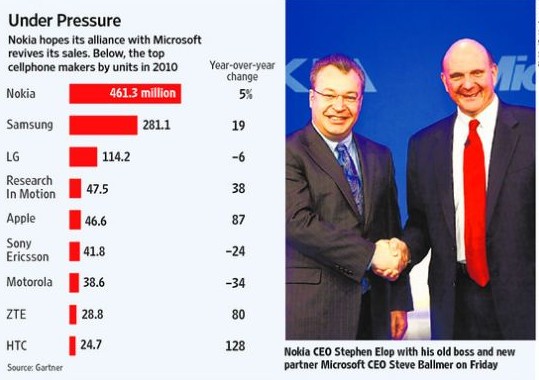 8250,N73,E71 ……曾幾何時(shí),諾基亞幾乎就是手機(jī)的代名詞。直到2008年第二季度,其全球市場(chǎng)份額高達(dá)40%,但此后便開(kāi)始下滑,2010年第四季度其市場(chǎng)份額跌至31%。