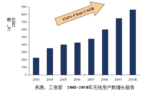 中國的移動(dòng)增值服務(wù)和移動(dòng)支付解決方案的發(fā)展與手機(jī)行業(yè)的增長密切相關(guān)。根據(jù)工信部的調(diào)查,截止2009年年底,有7.47億人擁有手機(jī),其中2.33億的用戶曾至少使用一次手機(jī)瀏覽。工信部2010年4月發(fā)布的一份數(shù)據(jù)顯示,中國的無線用戶數(shù)在2010年底預(yù)計(jì)將達(dá)到8.64億,復(fù)合年均增長率達(dá)14%,國內(nèi)電信行業(yè)的總營收在2010年將增長到4250億元。中國手機(jī)產(chǎn)業(yè)快速發(fā)展的趨勢(shì)主要是中產(chǎn)階層的推動(dòng)以及3G的發(fā)展。此外,艾瑞預(yù)測(cè),手機(jī)瀏覽器的的用戶數(shù)可能增長125%達(dá)到2012年的5.24億。