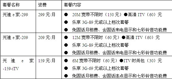 二、“我的e家”娛樂版套餐: