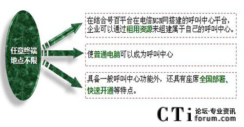 - 企業(yè)用戶不需投入任何呼叫中心系統(tǒng)的軟硬件(一般含交換系統(tǒng)、中繼等)