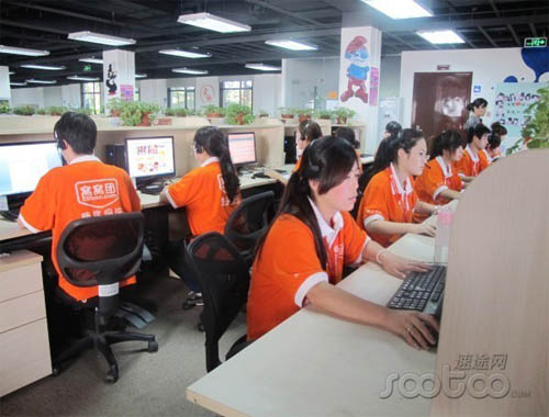 速途網(wǎng)在窩窩團(tuán)位于北美國際商務(wù)中心的呼叫中心看到,窩窩團(tuán)在線客服和call center以及論壇維護(hù)等部門在一層,而二層是劃分成商超、票務(wù)、親子麗人、中餐、旅游、甜品、生活?yuàn)蕵返炔块T的部分銷售團(tuán)隊(duì)。