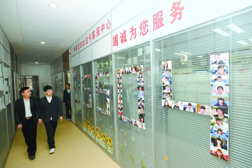 推開(kāi)中國(guó)石油加油卡客服中心的大門(mén),50個(gè)接聽(tīng)坐席進(jìn)入眼簾。身著白色上衣、藍(lán)色馬甲的客服人員忙碌地接聽(tīng)著各地客戶打來(lái)的電話。在這個(gè)中心的西墻上“一卡在手,全國(guó)加油”八個(gè)大字非常醒目。