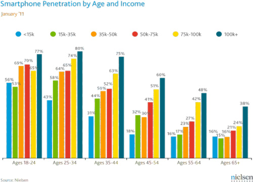 圖:尼爾森:年齡和收入決定智能手機普及率