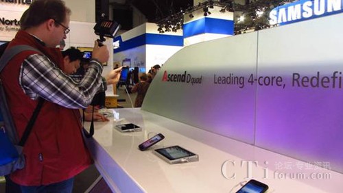 華為在移動(dòng)通信世界大會(huì)首日率先發(fā)布了Ascend D四核手機(jī)。據(jù)展臺(tái)工作人員聲稱(chēng),此款四核手機(jī)將在今年4月左右上市,同時(shí)出現(xiàn)在展臺(tái)的還有四核平板電腦Media Pad10,超高清的觸摸屏、超薄的設(shè)計(jì)及高速設(shè)計(jì),使它成為了華為今年推出的明星產(chǎn)品。此款平板電腦利用Android操作系統(tǒng),據(jù)稱(chēng)會(huì)在今年8月上市。