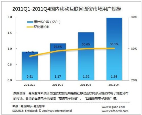 2011Q4國內(nèi)移動(dòng)互聯(lián)網(wǎng)圖資市場(chǎng)用戶規(guī)模達(dá)1.98億戶