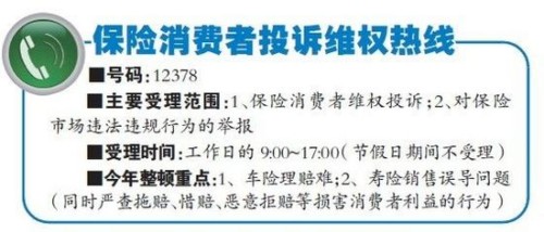 據(jù)保監(jiān)部門介紹,12378保險(xiǎn)消費(fèi)者投訴維權(quán)熱線的受理范圍主要有兩個(gè)方面:一是保險(xiǎn)消費(fèi)者維權(quán)投訴;二是對保險(xiǎn)市場違法違規(guī)行為的舉報(bào)。
