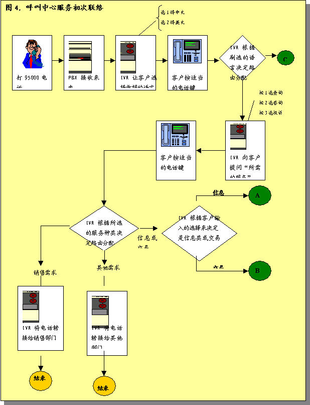 圖4詳細說明了呼叫中心服務初次處理呼叫的過程。根據(jù)圖標的內容,將立即撥號呼叫者: