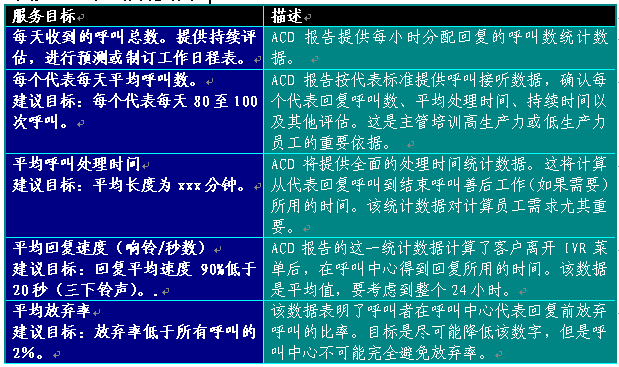 4) 服務(wù)水平問(wèn)題的回答 每個(gè)工作日結(jié)束的時(shí)候,報(bào)告將通知中心是否達(dá)到預(yù)先設(shè)定的服務(wù)水平目標(biāo)。