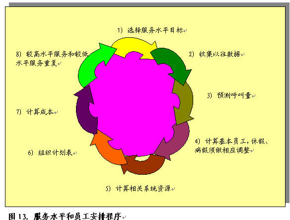 制訂員工工作時(shí)間表是一個(gè)重要的管理任務(wù),每天通過(guò)三次替換有效配置員工,從而提供一年365天,24小時(shí)x7天的服務(wù)?衫肁CD報(bào)告進(jìn)行這一工作,確定以往呼叫量、放棄率和高峰期,預(yù)計(jì)下個(gè)小時(shí)、下一天、下個(gè)月或下一年的呼叫量。管理層按照規(guī)定程序確定員工需求量。根據(jù)以往呼叫量確定員工需求量。