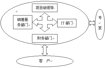 CRM項目小組由公司內(nèi)部各部門及外部人員共同組成。一般來講,項目小組應該包括高層領導(一般為副總)、銷售和營銷部門的人員、IT部門的人員、財務人員,還要包括所有最終用戶的代言人。他們作為CRM系統(tǒng)實施的輸入部分。