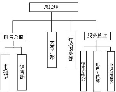 經過討論,結合公司的實際情況,Z公司迅速采納了項目組提出的建議,并在CRM項目啟動大會上宣布項目開始實施。而且調整了組織結構,新的結構如圖2所示。整個CRM項目分兩個階段實施,第一階段實現銷售業(yè)務的跟蹤監(jiān)控,以及部分市場信息的共享傳遞,第二階段再將公司的市場管理、服務管理、用戶關懷等業(yè)務流程納入整個系統(tǒng)。