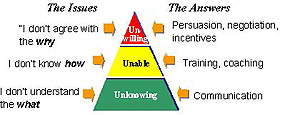 采納CRM要求有相當(dāng)全面的管理改變計(jì)劃,它將涉及企業(yè)中大部分——如果不是所有——的功能區(qū)域。全面采納 CRM策略,把它作為一個(gè)關(guān)鍵和持久的競(jìng)爭(zhēng)優(yōu)勢(shì)需要全機(jī)構(gòu)的致力于其中。一切都交給CRM,聽(tīng)之任之,不會(huì)帶來(lái)好結(jié)果,因?yàn)槿藗儾辉敢飧淖儸F(xiàn)有的慣常做法和程序。理解人們?yōu)楹慰咕芨淖儠?huì)幫助你實(shí)施和管理成功的CRM計(jì)劃。不同類型的阻力需要你把CRM實(shí)施方式加以分割。有必要進(jìn)行相當(dāng)程度的教育和通過(guò)各種各樣的交流渠道不斷進(jìn)行內(nèi)外交流。堅(jiān)持不懈的有效管理會(huì)帶來(lái)好處。