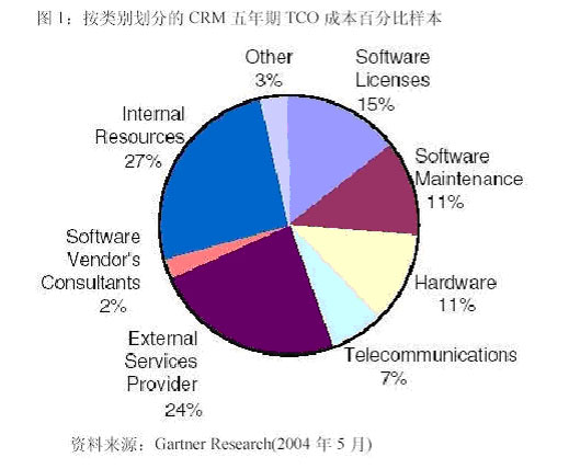 在我們所復(fù)審的TCO 當(dāng)中,我們注意到了在包括哪些內(nèi)容以及排除哪些內(nèi)容方面具有很高的可變性。外部服務(wù)代表著唯一最高的成本類別,它占了25%-35%的份額。勞動(dòng)力總成本(內(nèi)部資源與外部資源)占了CRM 項(xiàng)目總成本幾乎一半的份額。CRM TCO 中的趨勢(shì)顯示,大多數(shù)企業(yè)目前都沒(méi)有納入其所有的電信成本,并且在我們所研究的TCO 中只有不到一半的部分在其CRM TCO 中納入了所有的硬件成本。許多企業(yè)都在計(jì)算諸如“企業(yè)基礎(chǔ)設(shè)施”成本之類的成本,并且沒(méi)有把它們分配給其CRM 項(xiàng)目。你在創(chuàng)建CRM TCO 的時(shí)候,要采用以