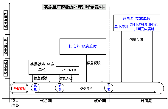 。。在外圍期推廣期,雙方項(xiàng)目組將確認(rèn)形成的優(yōu)化模版已達(dá)到很高的通用性,適合各個(gè)實(shí)施單元。配合培訓(xùn)工作,雙方項(xiàng)目組會(huì)設(shè)計(jì)出一套特定的課程,經(jīng)過(guò)培訓(xùn)后,使各地實(shí)施單元能夠在項(xiàng)目實(shí)施小組的支持下,利用優(yōu)化模板迅速實(shí)施。