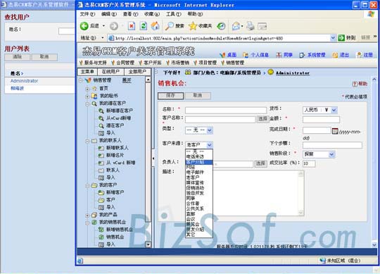 上圖是杰易CRM客戶關(guān)系管理系統(tǒng)的營銷活動管理模塊。該模塊將營銷活動和目標(biāo)管理分了七項管理,操作很是簡單但功能還非常到位。下圖是銷售機會模塊,筆者認(rèn)為此模塊設(shè)計者的思路特別周到,用戶可以隨時對自己銷售機會的狀況有一個清晰的掌控,利于銷售進程的安排。