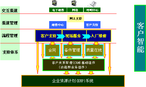 上海通方信息系統(tǒng)有限公司的咨詢顧問通過仔細地梳理上海煙草機械責任有限公司的工作流程之后,將現(xiàn)場服務的流程精簡為提交請求、客戶服務與定單合同、服務請求解決、請求轉移現(xiàn)場服務、備件管理、派工計劃。通過實施ORACLE CRM系統(tǒng)使得上海煙草機械責任有限公司已有的現(xiàn)場服務流程更加順暢、規(guī)范,提高了現(xiàn)場服務的效率和水平。