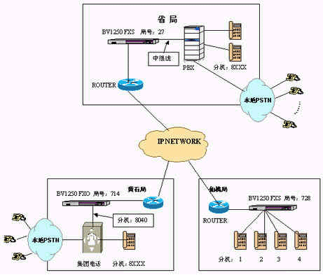 黃石局…呼叫各分支局:本地接入BV1250/FXO的分機(jī)號(hào)碼 + 對(duì)方局號(hào)+對(duì)方分機(jī)號(hào)碼。