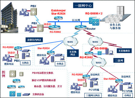 1、不改變?cè)芯W(wǎng)絡(luò)構(gòu)架,通過增加銳捷26系列路由器就可以直接把用戶PSTN系統(tǒng)接入IP網(wǎng)絡(luò),輕松實(shí)現(xiàn)VOIP應(yīng)用的擴(kuò)展接入。
