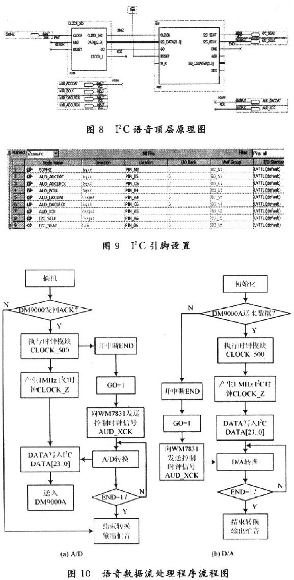 由于語(yǔ)音編解碼器的處理延時(shí)是影響VoIP話音質(zhì)量的因素之一,為了保證語(yǔ)音編解碼的實(shí)時(shí)性,軟件系統(tǒng)在控制WM8731編解碼器的編解碼同時(shí),加入了I2C語(yǔ)音模塊,以實(shí)現(xiàn)語(yǔ)音數(shù)據(jù)的實(shí)時(shí)處理。它采用自頂向下設(shè)計(jì)方法利用QuartusⅡ進(jìn)行設(shè)計(jì)。
