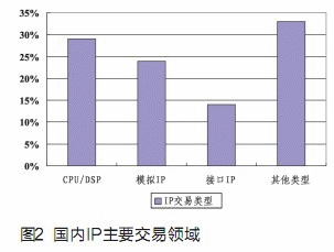Express等);三是模擬IP(如PLL,ADC等)。這三類IP需求占到總需求的一半多。而其他的交易類型如標(biāo)準(zhǔn)的內(nèi)存模塊,以及一些面向特殊應(yīng)用的IP,則占據(jù)國(guó)內(nèi)需求的三分之一(見圖2)。
