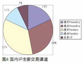而境外的IP Vendor因?yàn)槟軌蛱峁┚邆滟|(zhì)量?jī)?yōu)勢(shì)和技術(shù)優(yōu)勢(shì)的IP核,也成為主要的IP交易渠道之一。具體的數(shù)據(jù)參見圖4。