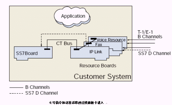 其它 T-1/E-1 通道被語(yǔ)音板卡管理,可通過(guò)CTbus路由到七號(hào)信令板卡