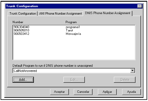 對于其他的DNIS或ANIS(沒有列出),可以關(guān)聯(lián)一個程序或者拒絕呼入。
