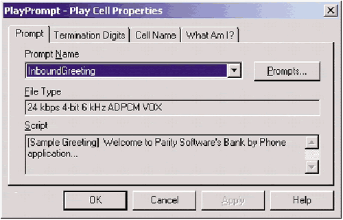 圖7: 特性對(duì)話框,用于為PlayPrimpt功能塊設(shè)置提示名稱(chēng)和終端數(shù)字