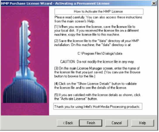 1. 從廠商處獲得許可證后,將許可證文件保存到HMP所在計(jì)算機(jī)上的%DLFWLPATH% 目錄中。這是HMP安裝的"數(shù)據(jù)"目錄。HMP購買許可證向?qū)У牡谌齻(gè)界面將指明你機(jī)器上的路徑(例如圖19)。另一種找出%DLFWLPATH%